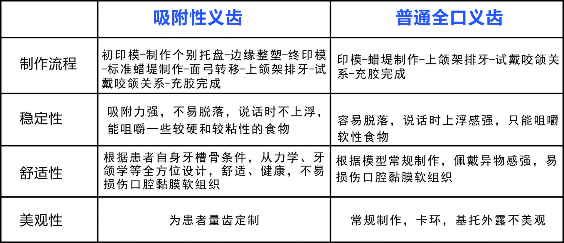 穩(wěn)定牢固,對(duì)于無牙頜患者,吸附性義齒吸附力強(qiáng),較普通活動(dòng)義齒穩(wěn)定牢固、不易脫落; 適用于所有無牙頜患者人群,特別是對(duì)義齒要求比較高的人群。或自身?xiàng)l件較差的渾濁,吸附 性義齒是老年無牙頜患者的福音。